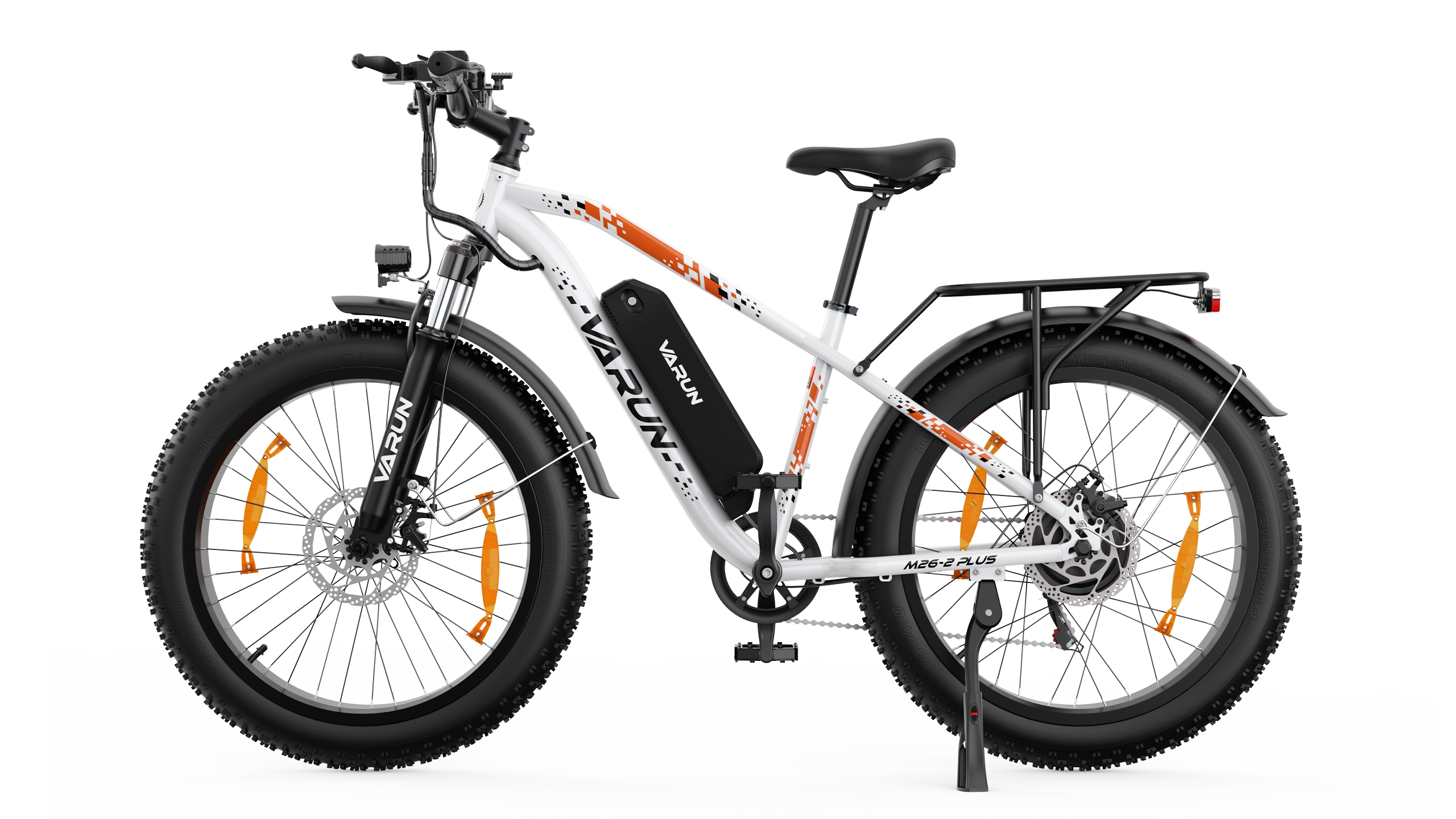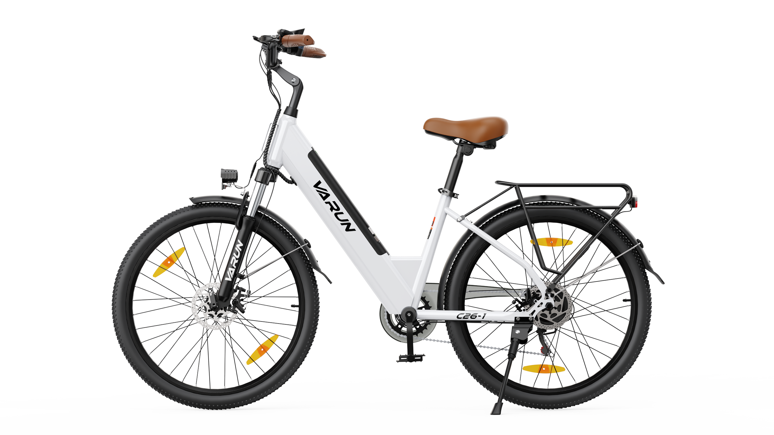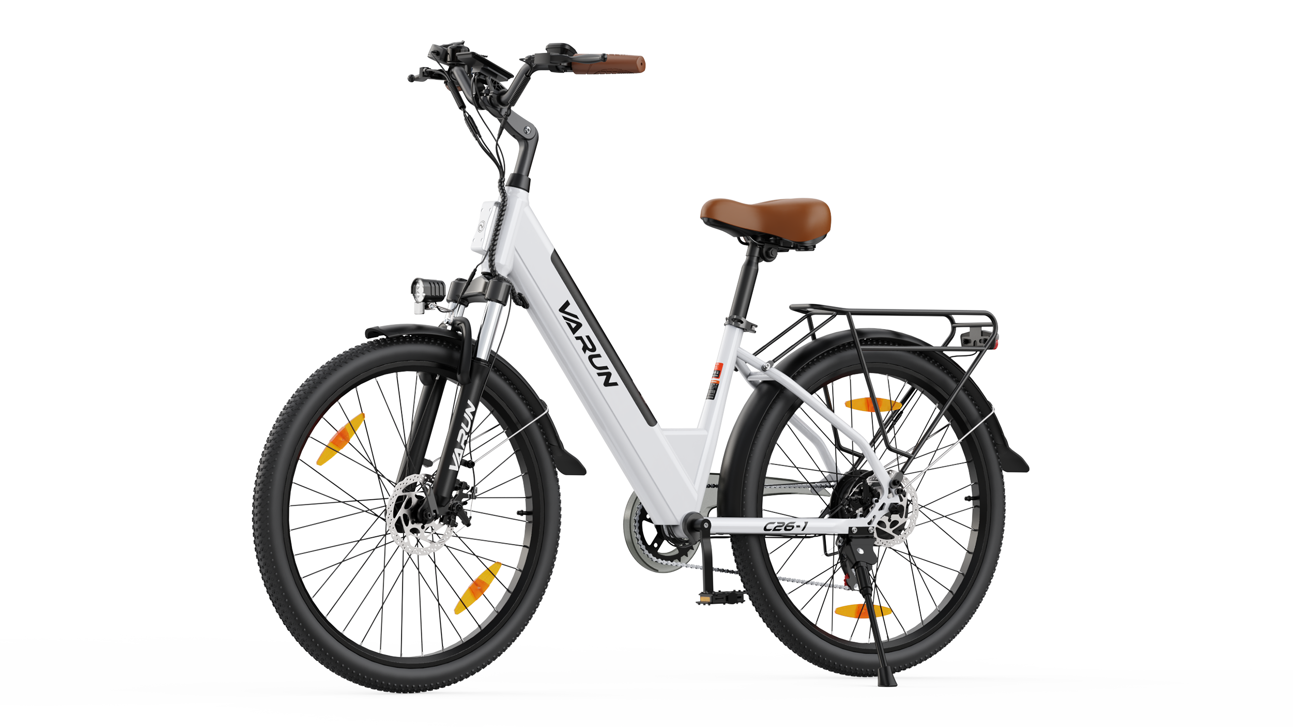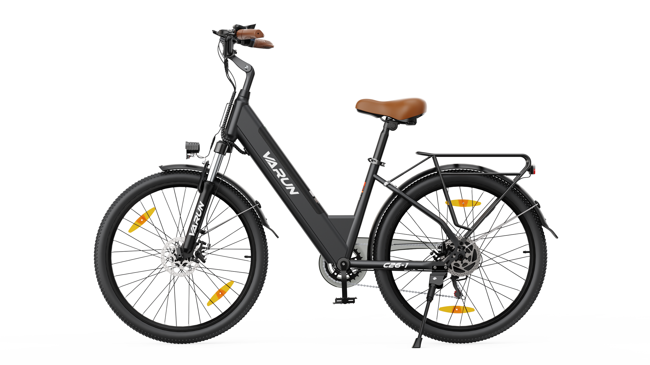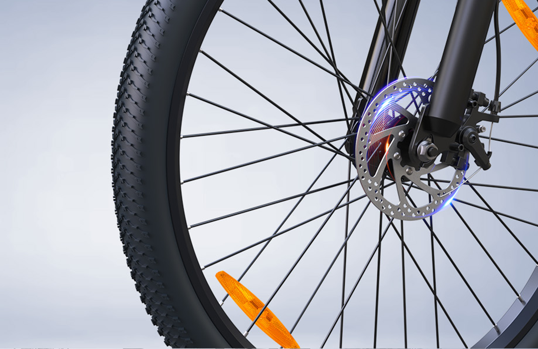 Nuestra bicicleta eléctrica cuenta con frenos de disco delanteros y traseros que ofrecen una potencia de frenado fiable y progresiva en cualquier condición de conducción. El diseño de doble disco garantiza un frenado constante, tanto en calles urbanas mojadas como en descensos empinados.